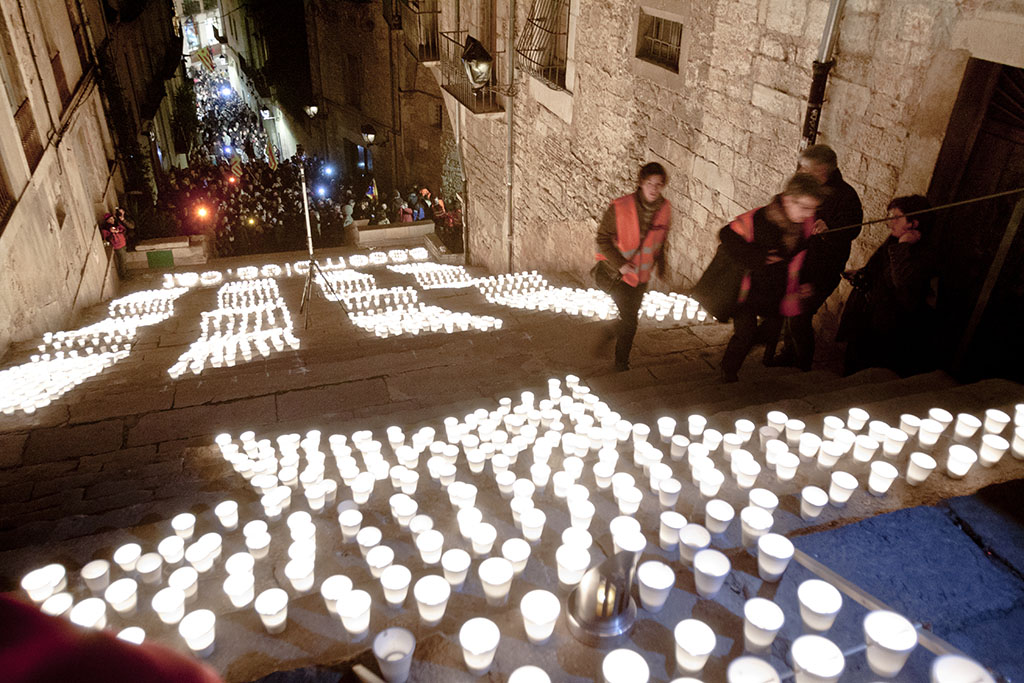estelada feta d’espelmes a les escales del seminari de Girona el 15 de març del 2013